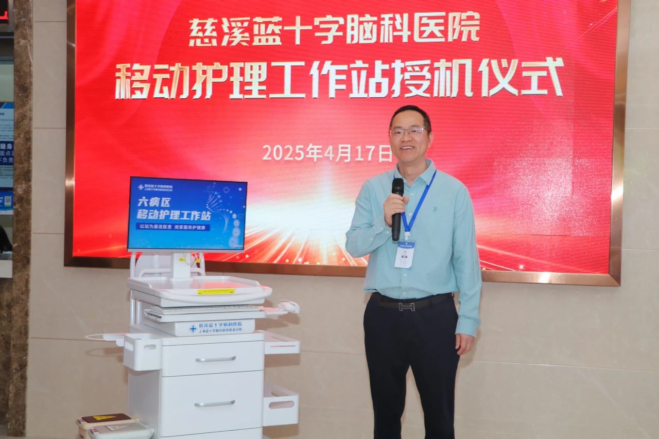 4月17日上午,慈溪藍(lán)十字腦科醫(yī)院門診大廳內(nèi)氣氛熱烈,以“移動(dòng)護(hù)理 智慧啟航”為主題的移動(dòng)護(hù)理工作站授機(jī)儀式隆重舉行。醫(yī)院領(lǐng)導(dǎo)班子、病區(qū)主任、護(hù)士長、護(hù)士代表及職能部門負(fù)責(zé)人齊聚一堂,共同見證智慧護(hù)理發(fā)展的重要時(shí)刻。