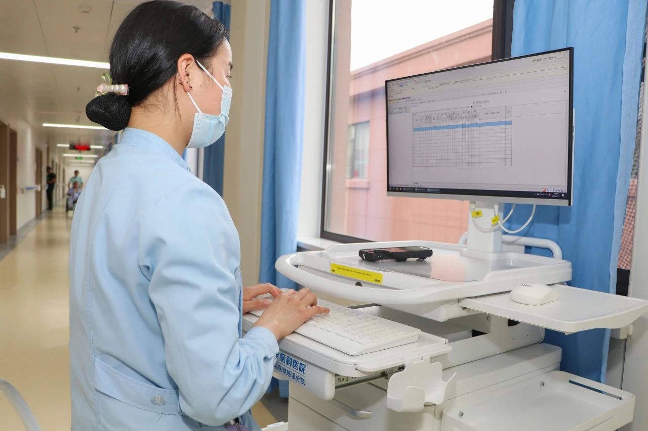 卓劍飛副總經(jīng)理詳細(xì)介紹了移動(dòng)護(hù)理工作站的核心功能。該智能系統(tǒng)由10臺(tái)移動(dòng)護(hù)理車、28部PDA、6臺(tái)護(hù)理信息屏組成,無縫對接醫(yī)院核心系統(tǒng),實(shí)現(xiàn)三大革新:操作精準(zhǔn)化:PDA掃碼核對患者身份、藥品及醫(yī)囑信息,將“三查七對”流程數(shù)字化,把護(hù)理差錯(cuò)率降至0.02‰以下,保障用藥安全;同時(shí),可在床旁實(shí)時(shí)錄入護(hù)理文書、生命體征,告別紙質(zhì)記錄的繁雜。服務(wù)高效化:護(hù)士在床旁就能查詢患者全周期診療信息,減少往返護(hù)士站時(shí)間;護(hù)理信息屏動(dòng)態(tài)展示病區(qū)患者狀態(tài)、護(hù)理任務(wù)及醫(yī)囑執(zhí)行情況,實(shí)現(xiàn)資源智能調(diào)配。升級(jí)智能化:未來將引入AI技術(shù),開發(fā)護(hù)理知識(shí)圖譜、通過自然語言處理生成護(hù)理記錄,整合智能床墊等物聯(lián)網(wǎng)設(shè)備,構(gòu)建“無感化”監(jiān)護(hù)網(wǎng)絡(luò),提供全周期智慧護(hù)理。