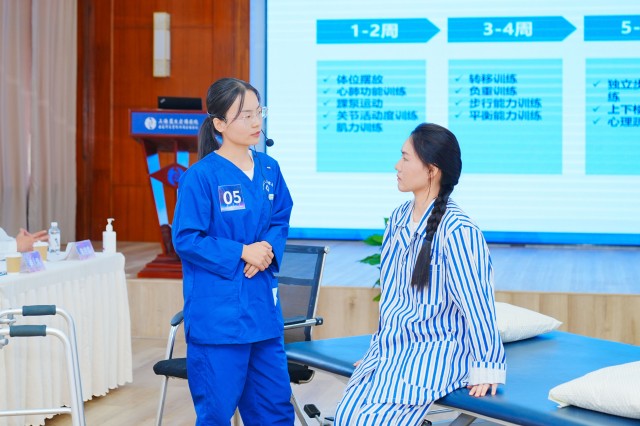 決賽現場共有五名選手進行了案例展示。按照“評估邏輯→方案設計依據→治療操作”重點環節,選手結合患者臨床資料,圍繞康復目標、治療計劃、訓練方案及階段性功能進展等方面進行了專業精彩的PPT講解和技能操作,展示了治療師縝密的康復思維和優秀的技能水平。