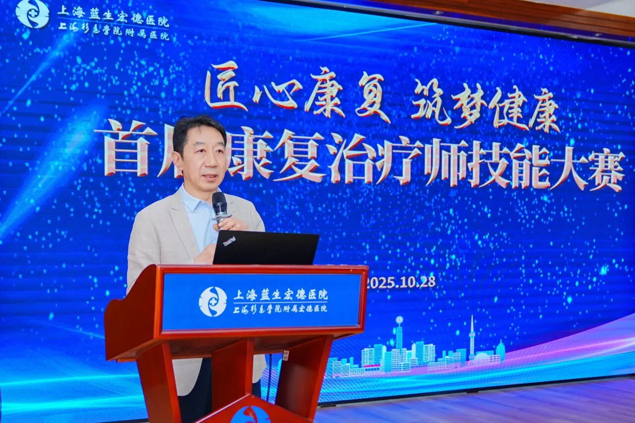 上海藍生宏德醫院周宏宇院長、林志強總經理等領導、病區科主任、機關相關職能部門負責人和康復治療師等參會聆聽。大賽由康復醫學科主任王偉祥教授主持。