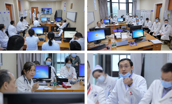 隨后,在醫生辦公室,3A神經內一科團隊進行了熱烈的病例討論。管床醫生完成病例PPT匯報后,周君主任就病歷書寫、影像閱片,查房病例診斷、鑒別診斷、治療方案選擇,以及支架術后雙抗用藥,腦梗死病因分型等,與科室醫師開展了深入探討。