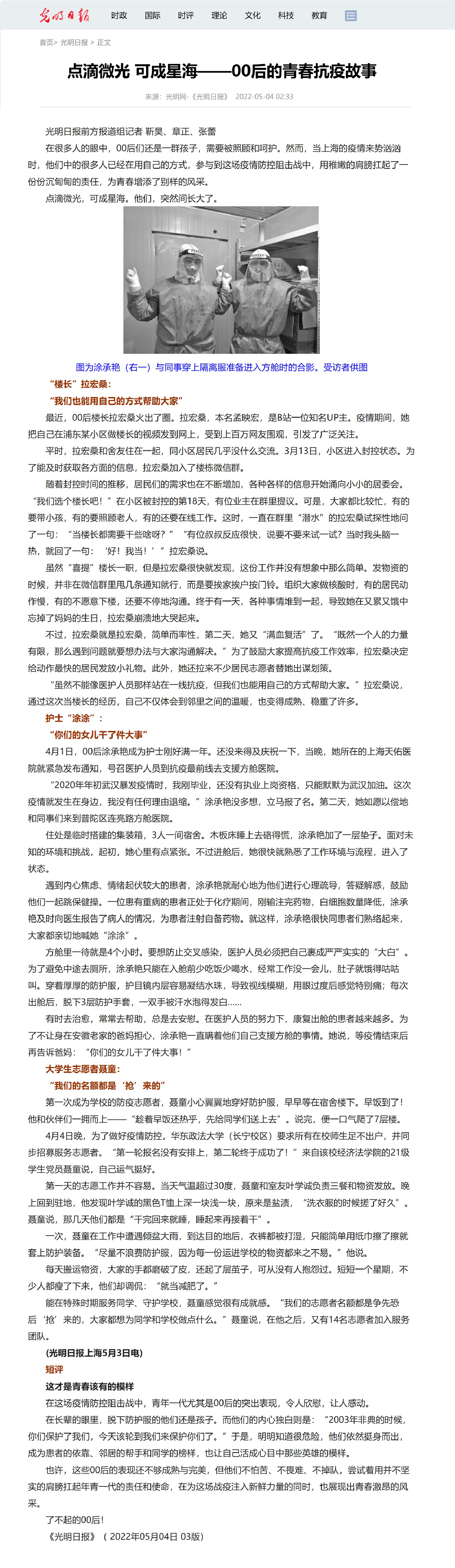 在很多人的眼中,00后們還是一群孩子,需要被照顧和呵護(hù)。然而,當(dāng)上海的疫情來勢洶洶時,他們中的很多人已經(jīng)在用自己的方式,參與到這場疫情防控阻擊戰(zhàn)中,用稚嫩的肩膀扛起了一份份沉甸甸的責(zé)任,為青春增添了別樣的風(fēng)采。