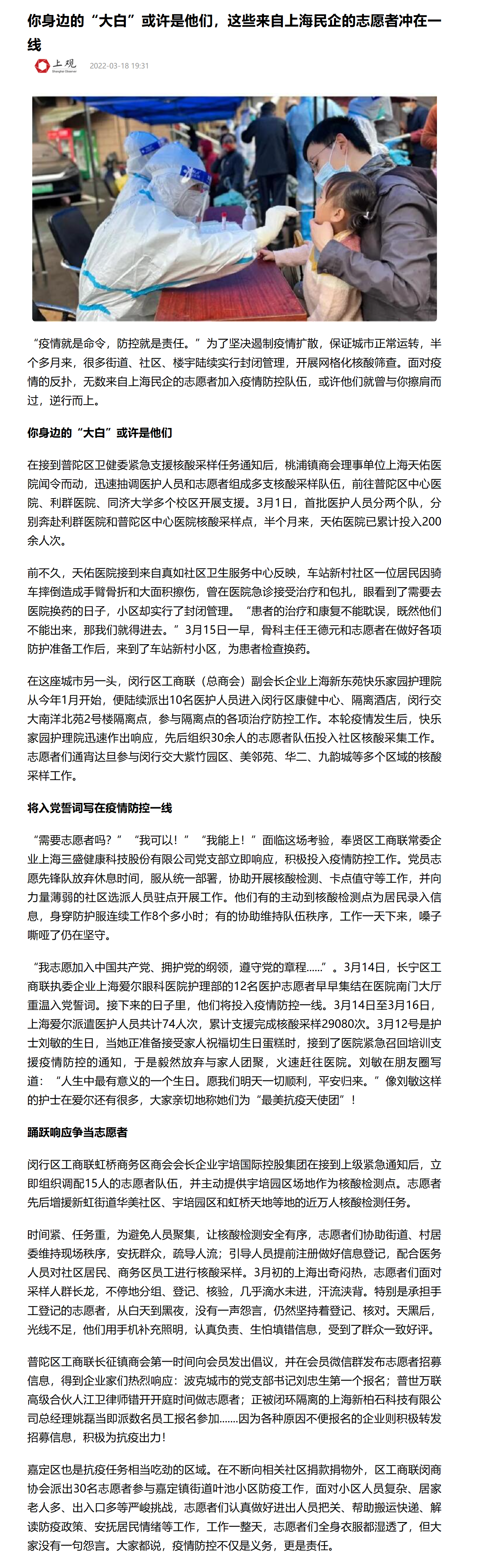 “疫情就是命令,防控就是責(zé)任。”為了堅(jiān)決遏制疫情擴(kuò)散,保證城市正常運(yùn)轉(zhuǎn),半個(gè)多月來,很多街道、社區(qū)、樓宇陸續(xù)實(shí)行封閉管理,開展網(wǎng)格化核酸篩查。面對(duì)疫情的反撲,無(wú)數(shù)來自上海民企的志愿者加入疫情防控隊(duì)伍,或許他們就曾與你擦肩而過,逆行而上。