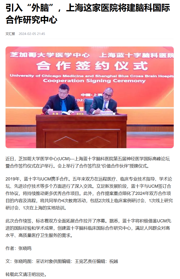 文匯報:引入“外腦”,上海這家醫(yī)院將建腦科國際合作研究中心