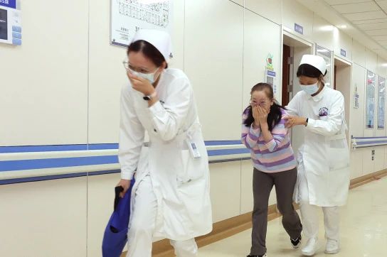 醫(yī)療急救:疏散過程中模擬有患者突發(fā)昏厥。醫(yī)院CPR急救小組迅速就位,實(shí)施現(xiàn)場緊急心肺復(fù)蘇,成功復(fù)蘇“患者”。