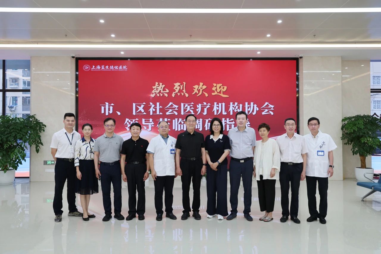 6月30日,上海市社會醫療機構協會會長閆東方一行,蒞臨上海藍生德佑醫院開展專題調研。上海市社會醫療機構協會副會長廖會員、副會長兼長寧區社會醫療機構協會會長喬曉洪、秘書長李立新等領導一同蒞臨調研。公司常務副總裁、上海市社會醫療機構協會副會長劉詩強,醫院總經理陳霞、執行院長譚峰等全程陪同參觀并參加座談會。
