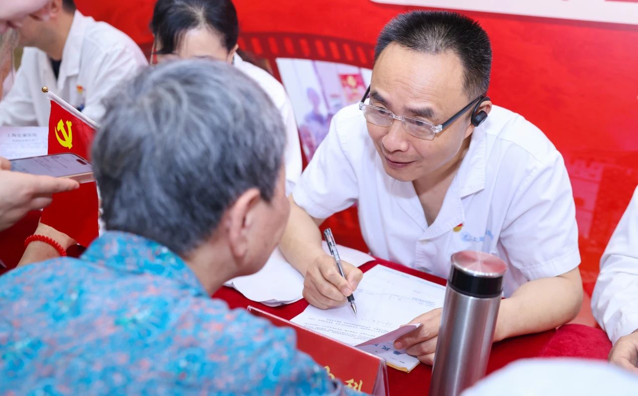 中醫(yī)咨詢臺(tái)前人頭攢動(dòng),熱鬧非凡。中醫(yī)科孫首慈醫(yī)生一邊手法熟練地為居民把脈,一邊仔細(xì)詢問居民的身體狀況,耐心解答疑問。
