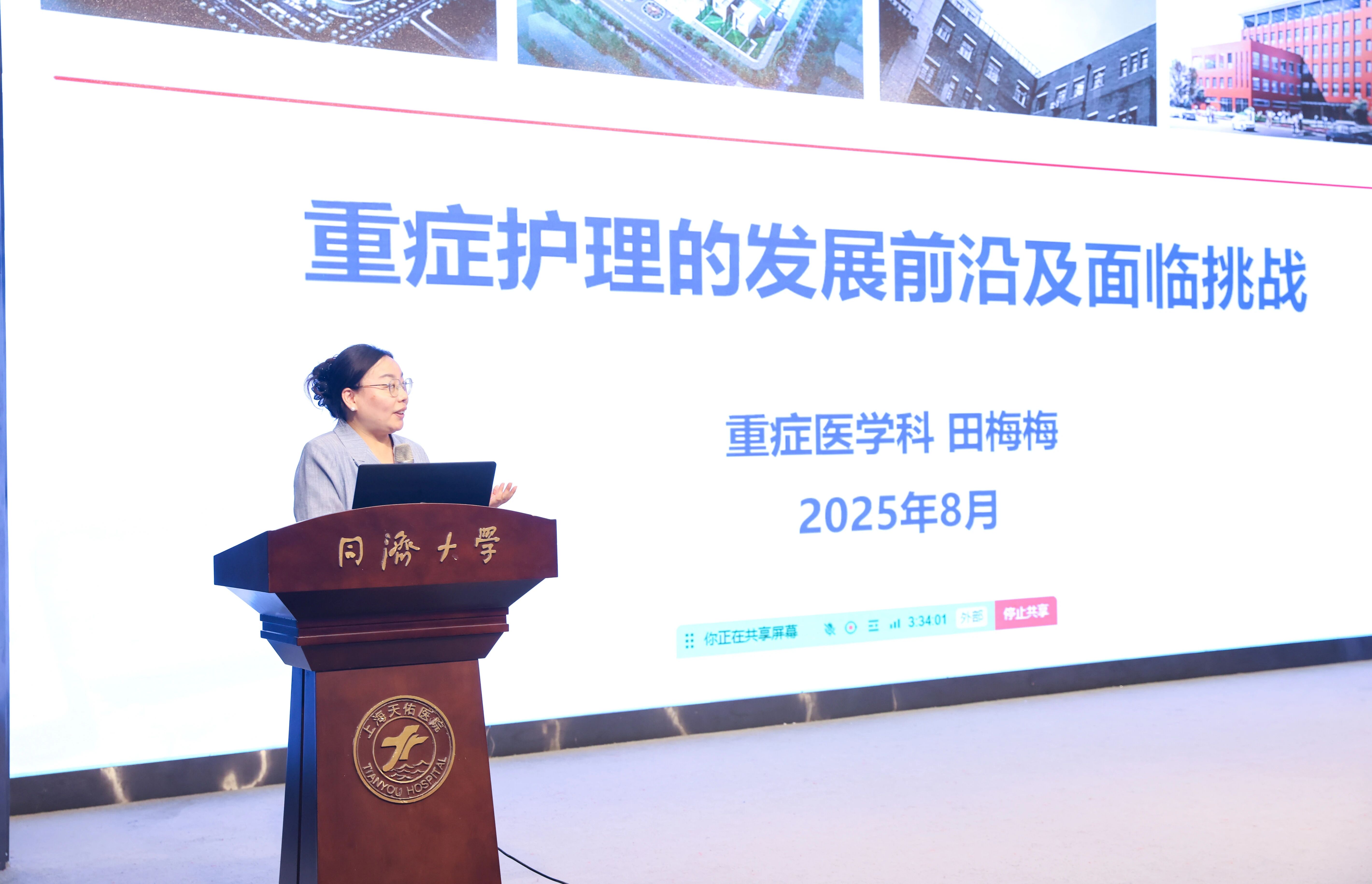 當天,上海交通大學醫學院附屬仁濟醫院田梅梅護士長以《重癥護理的發展前沿及面臨挑戰》為題,闡述重癥醫學的定位與核心價值,并分享重癥護理發展前沿、人工智能與數據驅動方法應用等方面的最新進展與未來思考。