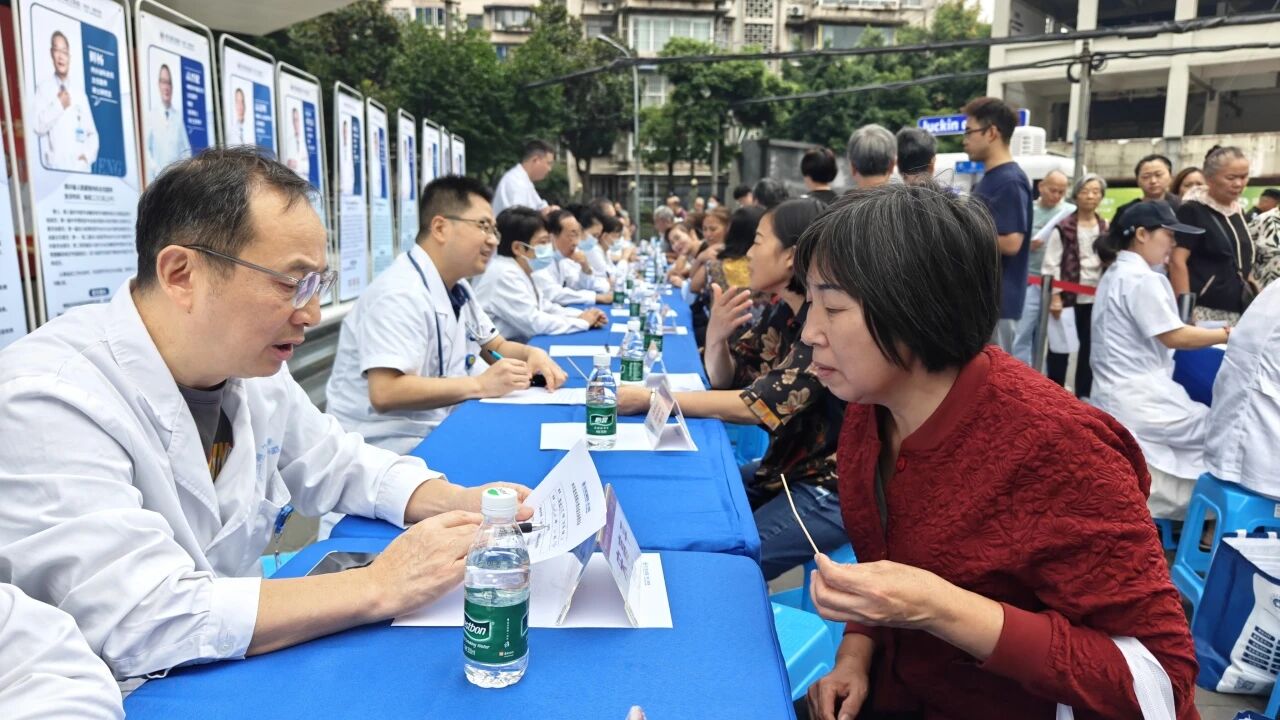 9點不到,活動現場已經聚集了不少前來問診的居民朋友。來自華西醫院、四川省人民醫院、四川省腫瘤醫院以及克利夫蘭醫學中心的知名專家攜手我院各學科帶頭人組成義診專家團隊,全面覆蓋神經內科、神經外科、睡眠與心身醫學科、康復醫學科、腫瘤科等20余個科室,強強聯合,為市民群眾們獻上了一份健康大禮。