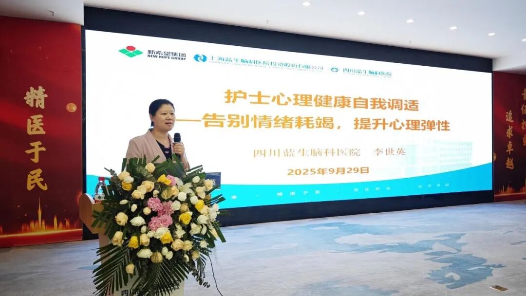 四川藍生腦科醫院李世英副主任護師針對護士常見情緒問題,開展《護士心理健康自我調適 —— 告別情緒耗竭,提升心理彈性》主題授課,提供實用的心理調適方法,助力護士緩解職業壓力。