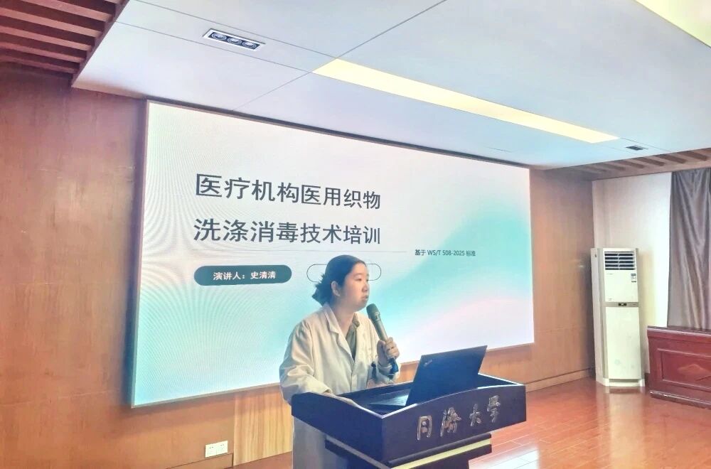 10月17日,感控辦史清清作醫(yī)療機(jī)構(gòu)醫(yī)用織物洗滌消毒技術(shù)培訓(xùn)(WS/T 508-2025 標(biāo)準(zhǔn))。護(hù)工們系統(tǒng)學(xué)習(xí)了織物收集、運送與洗滌消毒的全流程規(guī)范操作。同時,她還傳播正確洗手知識,提升護(hù)工們的感控意識。