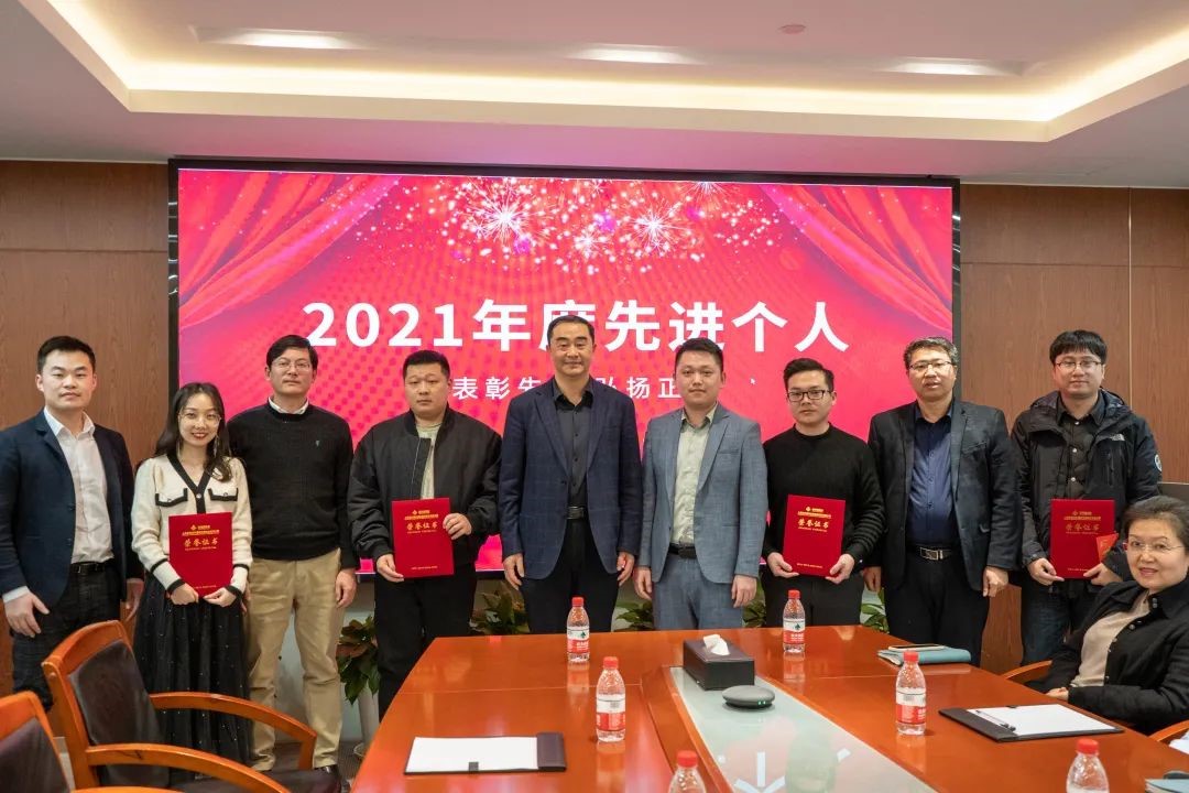 會議還評選表彰了2021年度先進個人。劉軼永總經理為獲獎人員頒獎并合影留念。