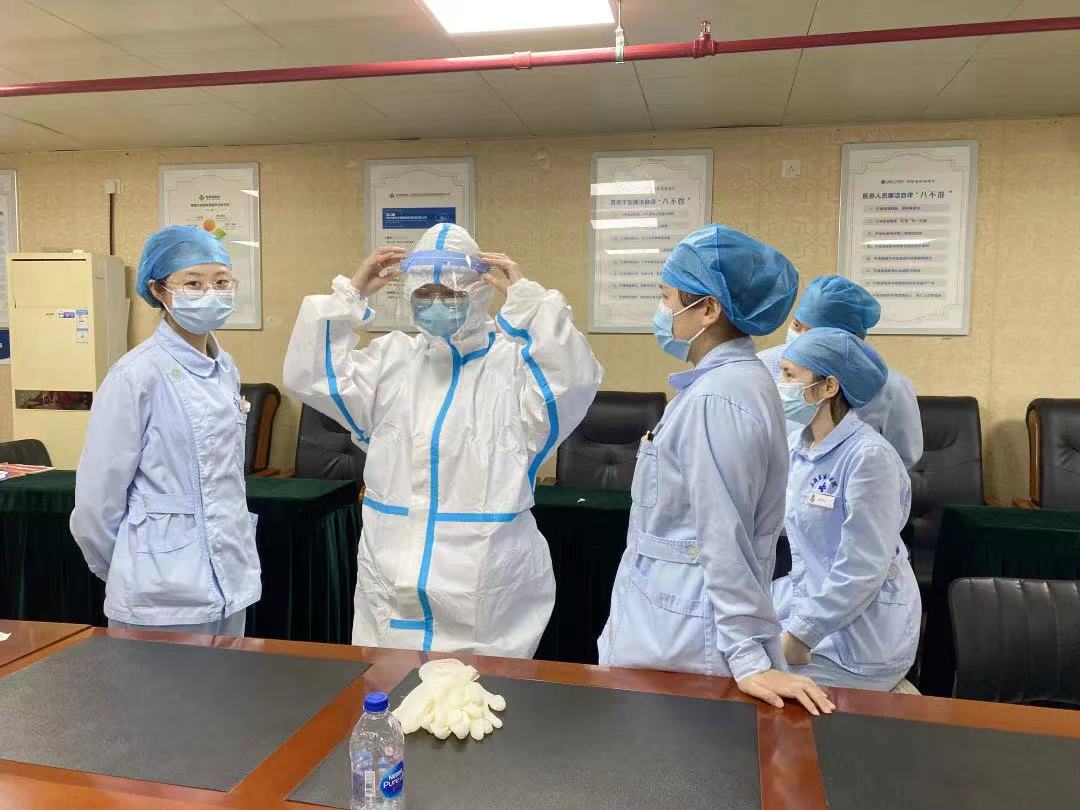 當天下午,護理部主任楊麗萍為隊員們準備防護物資,指導工作方案,開展防控培訓,確保操作流程標準、高效,防護到位。