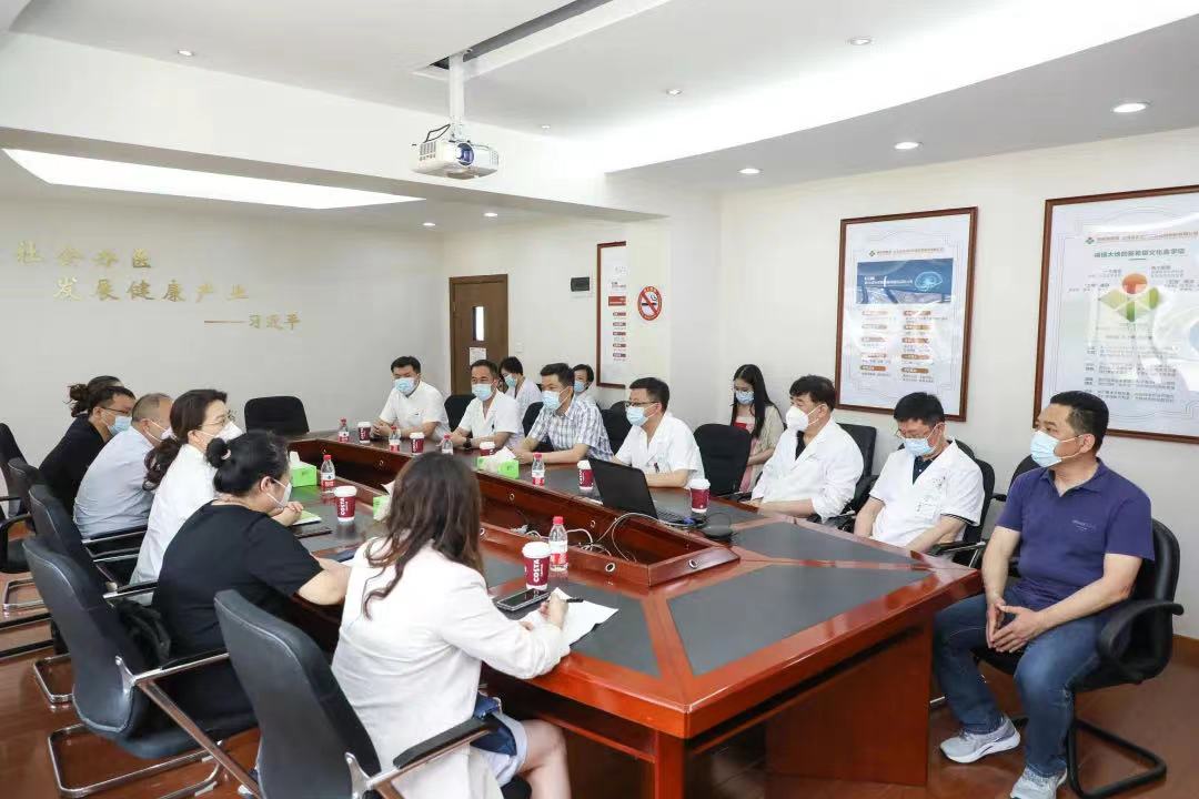 蔡劍飛院長、卓立峰總經理向區、鎮領導們的到來表示歡迎和感謝,并分別介紹了醫院在抗疫中的主要做法和成效、以及復工復診工作情況。