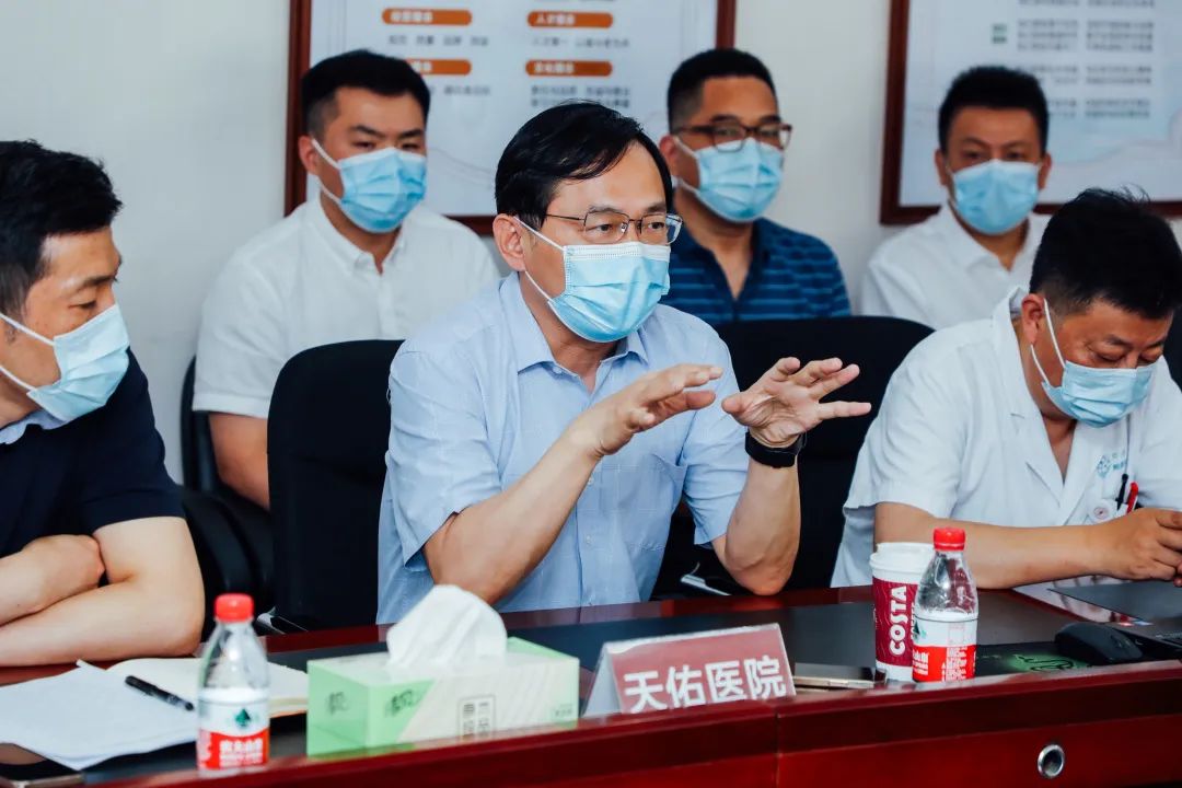 6月28日上午,普陀區衛生健康委員會主任奉典旭、普陀區衛生健康委員會監督所所長劉曄翔等領導一行到天佑醫院走訪調研,在行政樓舉行了座談會。公司董事長卓立強,天佑醫院院長蔡劍飛、總經理卓立峰等領導陪同參觀走訪并匯報工作。