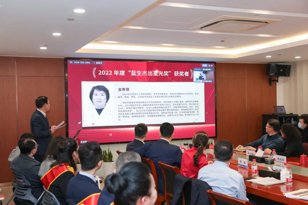 公司始終堅持“大業(yè)之本,首在英才”的理念,覆蓋公司各類單位和員工,表彰向臨床一線傾斜,牢牢立起“人才第一,以奮斗者為本”的鮮明導向。陳樹林書記通報公司董事長卓立強、副總裁兼天佑醫(yī)院院長蔡劍飛榮獲新希望集團40周年特別貢獻獎的喜報,宣讀公司《關于表彰2022年度“藍生星光獎”獲獎者的通報》,授予劉青樂等4人“藍生杰出星光獎”,王紅等11人“經(jīng)營管理之星”、李明峰等12人“學科貢獻之星”、廖紅宇等14人“優(yōu)質服務之星”、翁堅等3人“忠誠敬業(yè)之星”、王坤偉等9人“青年希望之星”,同濟大學附屬天佑醫(yī)院神經(jīng)內一科等3個團隊“藍生星光團隊獎”。
