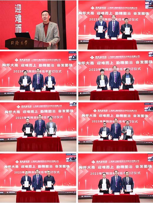 2月18日,公司舉行2023年目標責任書簽訂儀式暨二月高管例會,進一步明確新年奮斗目標,總結一月份工作成績和部署近期重點任務。會議設同濟大學附屬天佑醫院主會場和成都、深圳2個線上分會場。