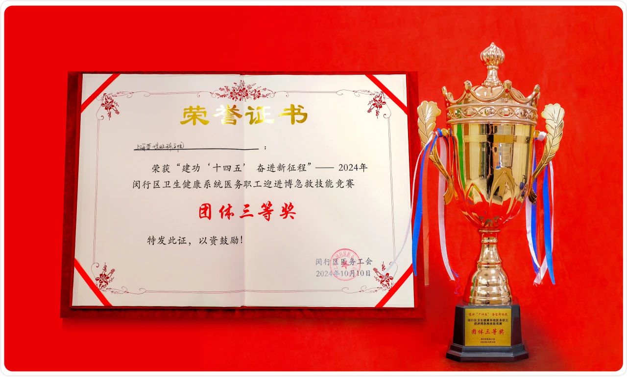 本次競賽自籌備以來,經(jīng)過集中培訓、遴選推薦,來自閔行區(qū)醫(yī)療急救中心、上海市閔行區(qū)中心醫(yī)院、上海市第五人民醫(yī)院、閔行區(qū)腫瘤醫(yī)院等35支隊伍,共140名選手參加了比賽。經(jīng)過初賽階段激烈地角逐,共有8支團隊、8名個人進入決賽。面對實力強勁的競爭對手,上海藍十字腦科醫(yī)院參賽隊的選手們沉著冷靜、有條不紊、通力協(xié)作,充分展示了應急救護的規(guī)范操作流程。最終,上海藍十字腦科醫(yī)院參賽隊榮獲團體及個人三等獎。
