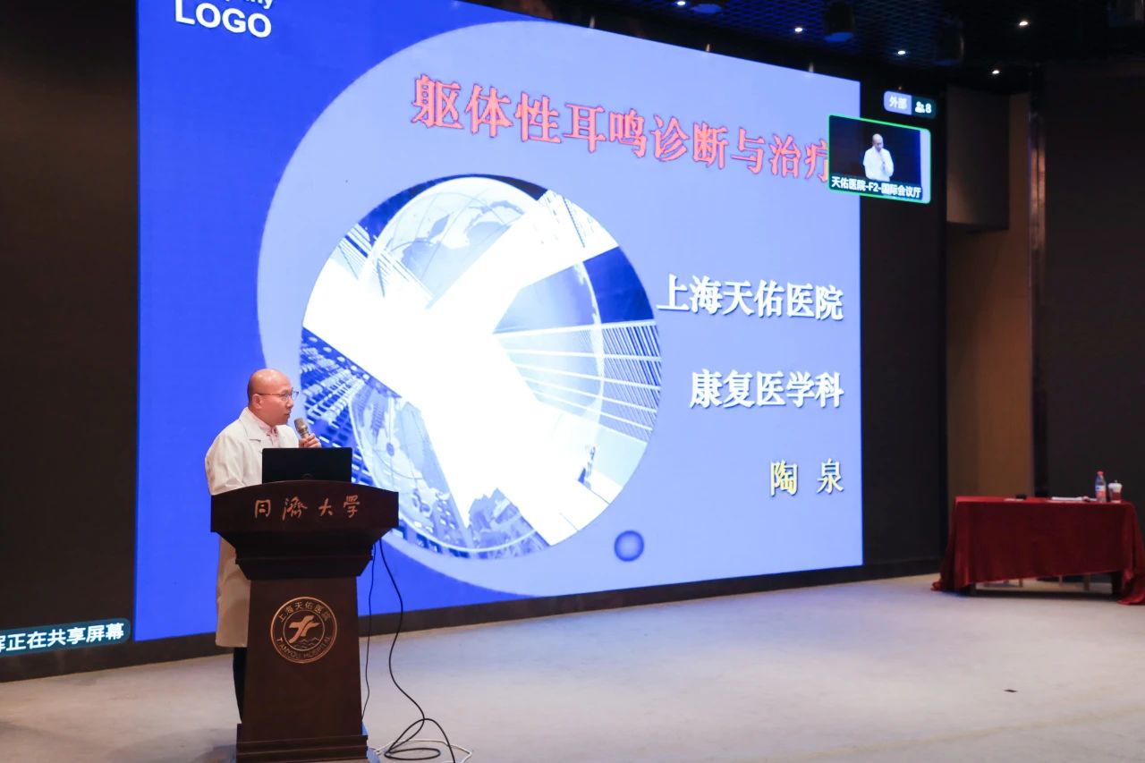 天佑醫院康復科陶泉主任圍繞《軀體性耳鳴的診斷與治療》這一主題,結合實際案例,講述了軀體性耳鳴的機制、評估、診斷與治療。他介紹:“上世紀80年代醫學家發現一種耳鳴與頭頸部肌肉緊張有關,一旦肌緊張得到緩解,耳鳴隨之減輕或消失,這種耳鳴稱為軀體性耳鳴。軀體性耳鳴通常可分為頸源性、顳下頜源性和肌筋膜源性等。”陶泉主任還講解了軀體性耳鳴的病因、臨床表現以及特征等,提出軀體感覺和聽覺系統相互作用生理機制是軀體性耳鳴產生和改變的原因。