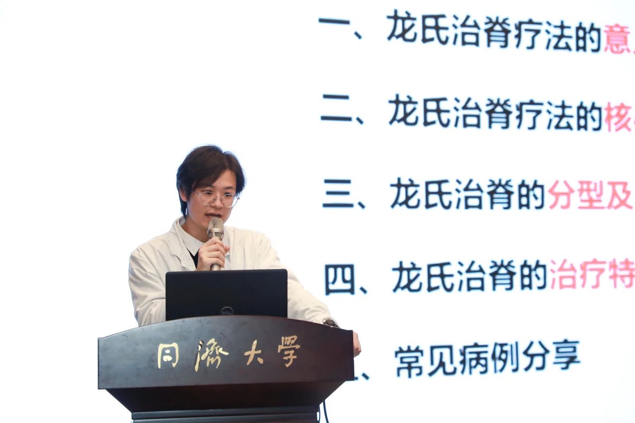 “龍氏治脊療法起源于20世紀末,由魏征、龍層花教授創立,是融合經絡學、解剖學及生物力學的一門特殊的脊椎疾病的治療技術,它強調脊柱、關節異常可影響全身功能。”天佑醫院康復科主管治療師黃濤以《頸椎病的龍氏治療》為題,講述了龍氏治脊療法的核心技術以及龍氏治脊的分型及手法特色、治療特點,并分享了龍氏治脊三步定位診斷法,即神經定位診斷、觸診定位診斷、影像學定位診斷。他強調,龍氏治脊療法的精髓在于“動中求正”,手法特色在于穩定且準確、軟硬結合。