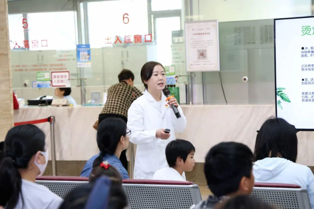 在互動環節,天佑醫院黨支部書記、兒科主任葉建蘭化身"兒童安全守護者",為現場家長帶來了一堂實用的兒童急救課程。葉主任結合真實案例,生動講解了腦外傷、溺水、氣道異物梗阻、動物咬傷、燙傷、鼻出血等六大兒童常見意外傷害的正確處理方法。"很多家長在孩子跌倒后,只關注表面外傷,卻忽視了遲發性顱內出血的風險。"葉主任特別強調,對于頭部受傷的兒童,必須持續觀察48小時內的精神狀態變化。針對家長常見的急救誤區,葉主任進行了科學糾正,并現場演示了嬰幼兒心肺復蘇的正確操作流程。