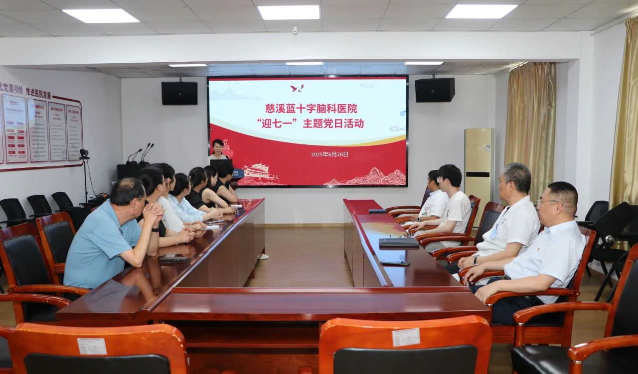 在中國共產黨成立104周年之際,6月26日下午,慈溪藍十字腦科醫院黨支部以“專題學習+紅色教育+實踐感悟”三位一體的形式,開展“迎七一”主題黨日活動,帶領全體黨員及入黨積極分子筑牢信仰根基,補足精神之鈣。