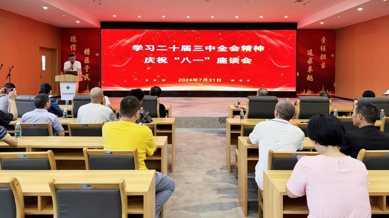 為學習貫徹黨的二十屆三中全會精神,熱烈慶祝中國人民解放軍建軍97周年,7月31日下午,四川藍生腦科醫院組織學習二十屆三中全會精神,舉行慶祝“八一”專題座談會。在院工作的退役軍人、黨員和非值班人員,成都市長城慈善基金應邀的領導嘉賓及退伍老兵代表參加座談,院長黃光富等院領導出席并致辭。