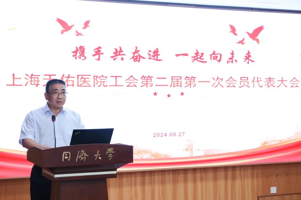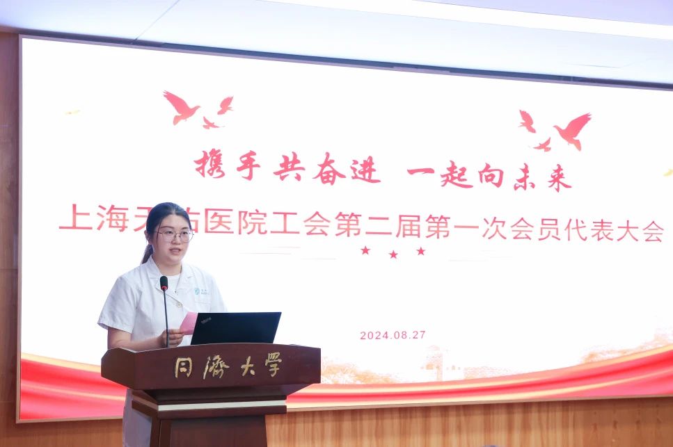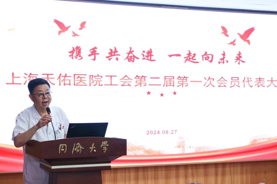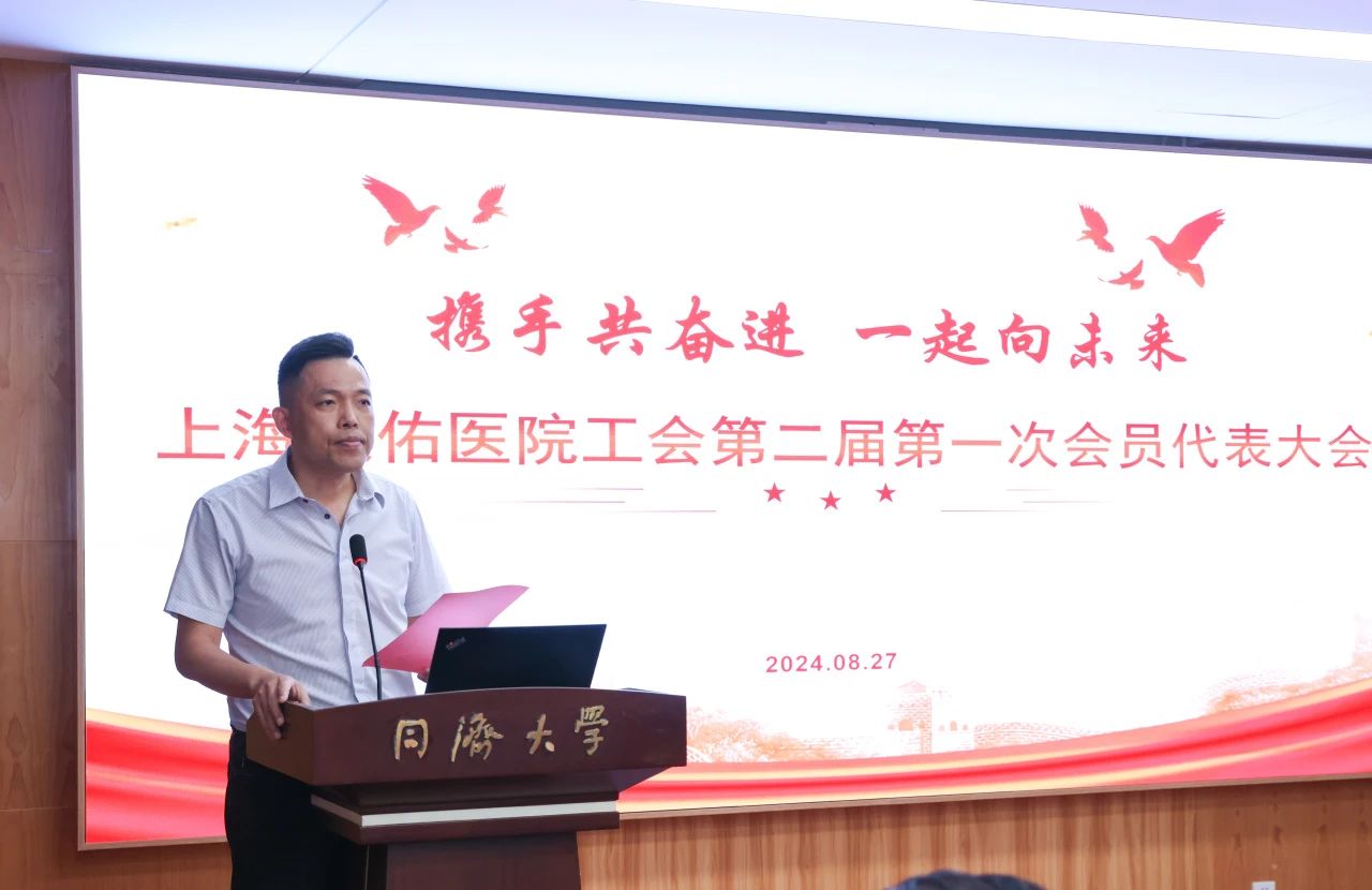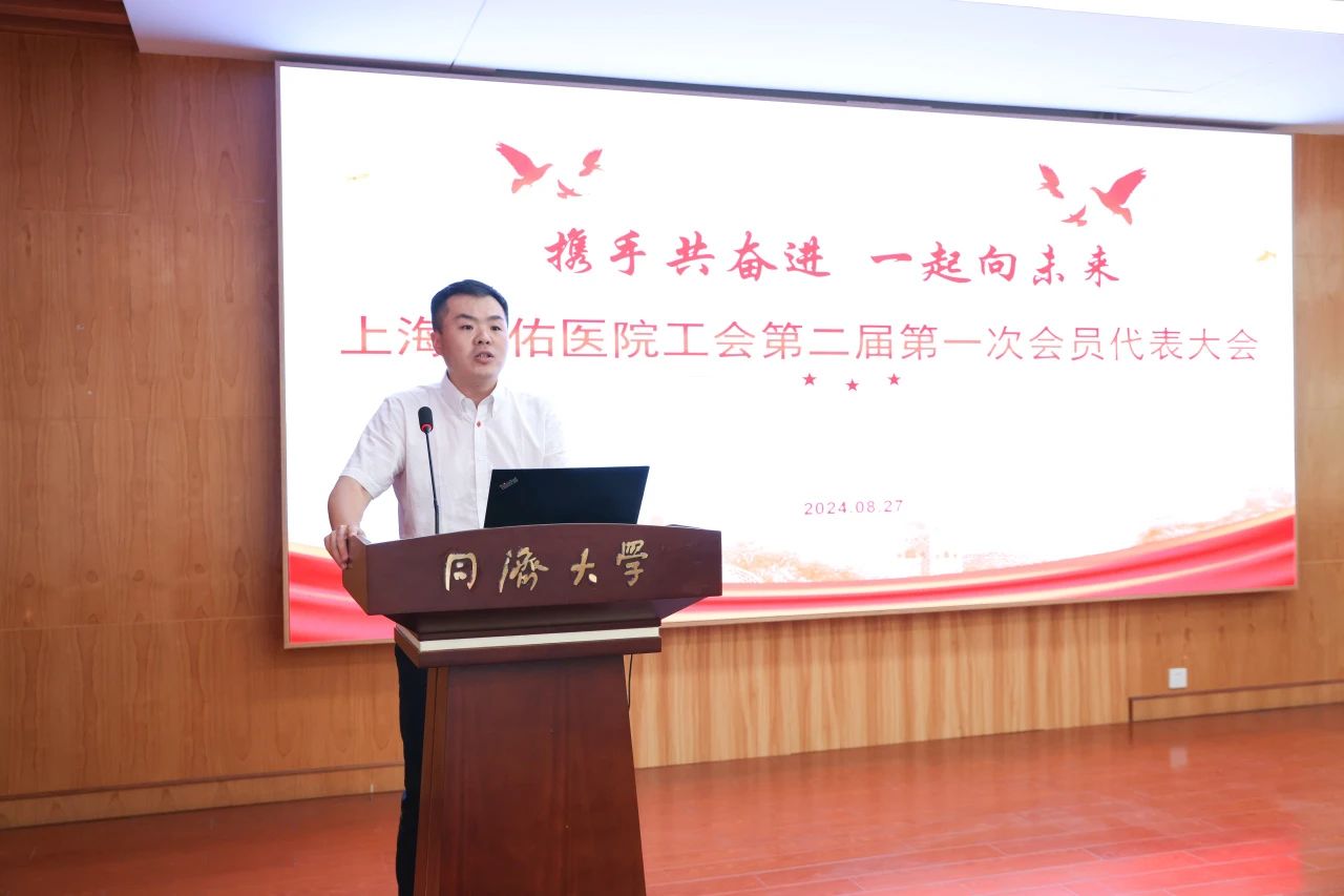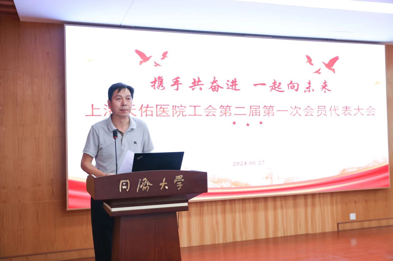 上海天佑醫(yī)院第一屆工會主席、副總經(jīng)理卓偉元作主題為《攜手共奮進,一起向未來》的工會工作報告。他從“工會架橋解難,服務職工心貼心;培訓競賽并進,提升職工業(yè)務力;文化凝聚人心,生活多彩促團結(jié);黨建引領(lǐng)發(fā)展,醫(yī)療服務顯初心;人才建設(shè)先行,學科強院競爭力;民主管理共參,和諧醫(yī)院共發(fā)展”六個方面全面回顧總結(jié)了醫(yī)院第一屆工會委員會的工作。