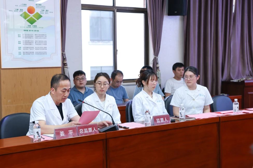 醫(yī)院卓立峰總經(jīng)理宣讀計票結(jié)果。選舉產(chǎn)生了天佑醫(yī)院新一屆工會委員會,卓偉元當選為第二屆工會主席,丁思宇、陳竹娟、唐國強、黃熠當選為第二屆工會委員。