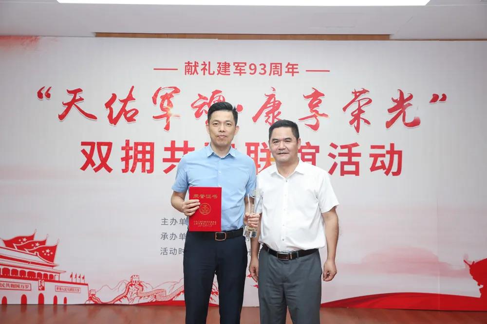 陳火春部長還為天佑醫院總經理卓立峰頒發了“愛國擁軍模范個人”稱號的證書和獎杯。