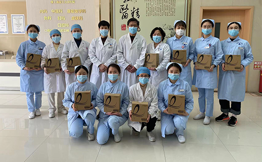 上海康沈醫院院長沈廣智、總經理卓海輝為女性員工送上鮮花和誠摯問候。