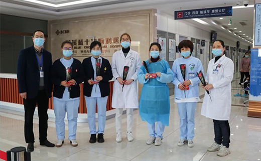 蘇州藍十字腦科醫院舉辦“巾幗綻芳華 逐夢藍十字”活動。院長張璠、總經理劉金爐為公司副總裁黃曉梅和醫院128名女性員工送上精美禮物,為堅守抗疫一線的女性員工送去“云祝福”。