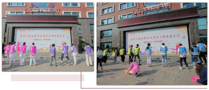 11月6日一大早,上海天佑醫院大樓前的廣場上彩旗飄揚、樂聲陣陣,歡呼聲、吶喊聲、歡笑聲打破了醫院以往的寧靜,一場別開生面的運動會正在火熱進行。仿佛是被疫情壓抑得太久,平時穿梭在病房里的燕尾帽、白大褂一改工作時的溫柔和儒雅,在賽場上拼得“趣”樂無窮。