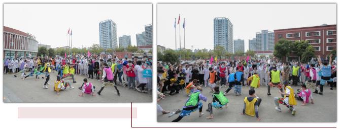 9:00,伴隨著主持人充滿激情的解說,國旗方隊、拉拉操方隊和8支參賽代表隊按序入場。在舉行升旗儀式后,天佑醫院第二屆趣味運動會在拉拉操勁舞中拉開了序幕。