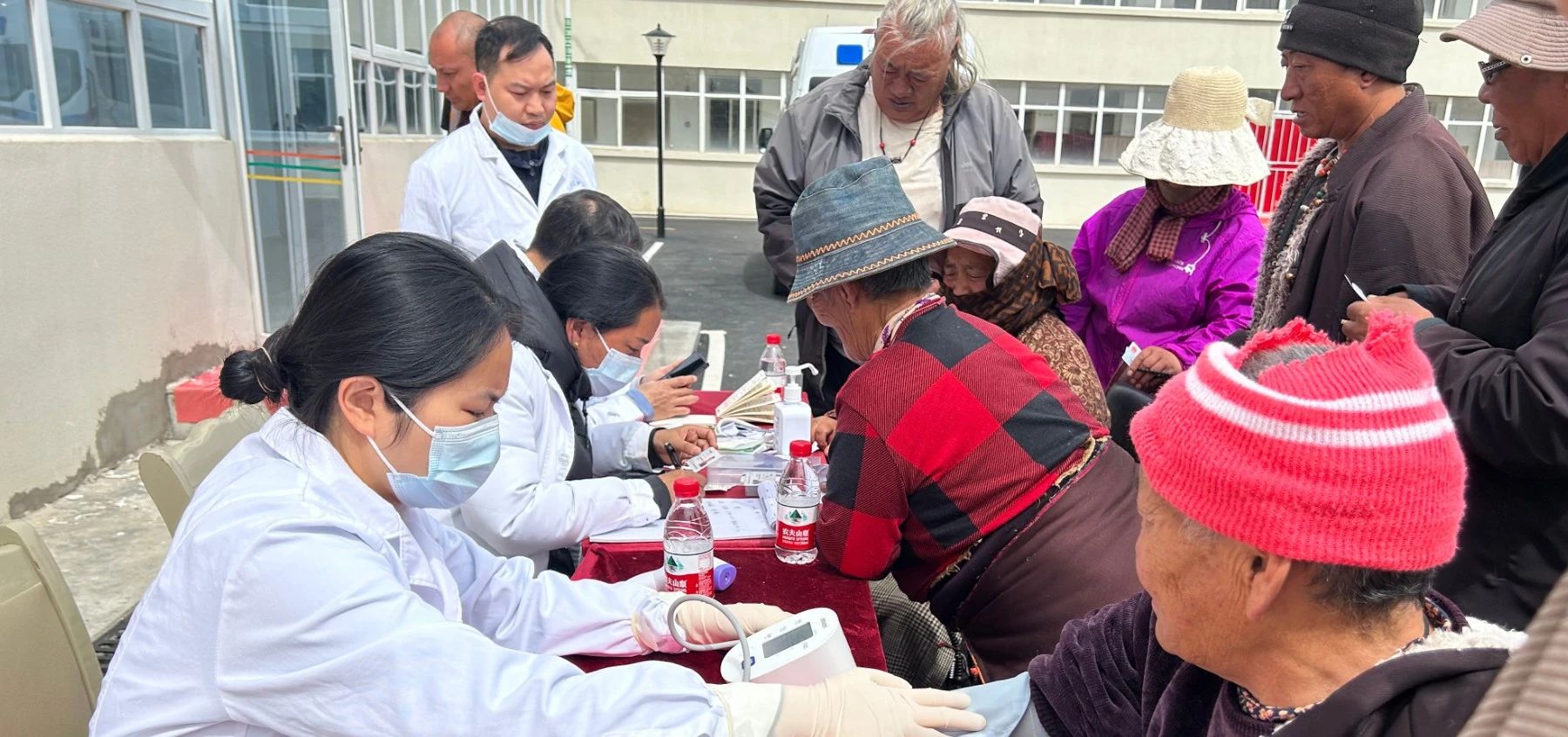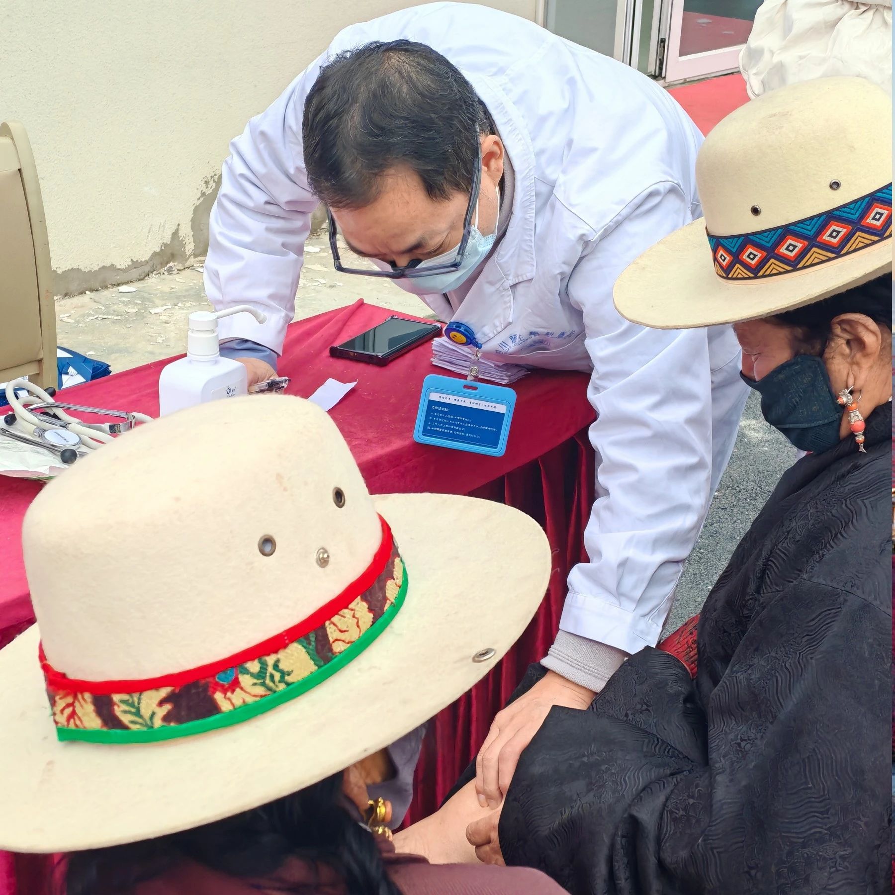 義診現場,段勇將主任帶領醫療小組有條不紊地開展工作。他們俯身細致檢查每一位患者的膝關節、髖關節及腰椎狀況,精準診斷疾病隱患;護士們為居民測量血壓,一邊輕聲安撫緊張的老人,一邊快速記錄健康數據;藏漢雙語翻譯穿梭于人群中,用藏語輕聲傳遞醫生的專業診斷和治療建議以及“減少負重勞作”“注意關節保暖” 等醫囑,鼓勵他們樹立戰勝疾病的信心。
