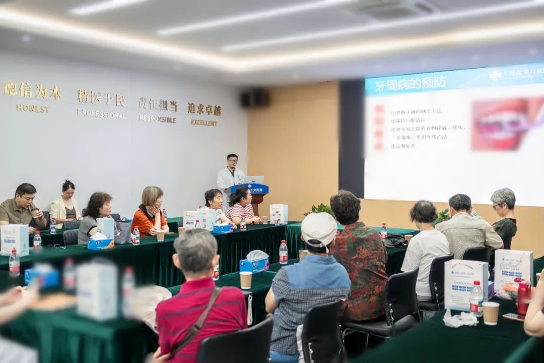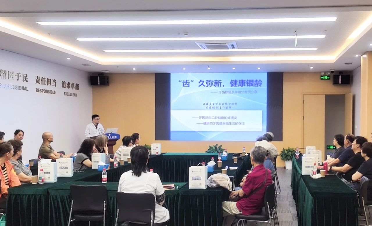 座談會(huì)上,口腔科吳海鵬副主任醫(yī)師以“‘齒’久彌新,健康銀齡”為主題,開展了一場(chǎng)關(guān)于口腔健康與牙齒修復(fù)科普講座。吳主任詳細(xì)介紹了老年人常見口腔問(wèn)題,如齲齒、楔狀缺損、牙周病、缺失牙等,以及口腔健康對(duì)全身健康的影響。并通過(guò)一個(gè)個(gè)典型病例,向大家深入解析牙齒修復(fù)、種植牙病例的方案設(shè)計(jì),破除了“老掉牙是自然現(xiàn)象”“殘根不要拔”等認(rèn)知誤區(qū),既滿足專業(yè)嚴(yán)謹(jǐn)性要求,又保留了科普傳播的感染力。講座緊扣“口腔健康,全身健康”理念,強(qiáng)調(diào)定期口腔檢查與科學(xué)防治對(duì)提升老年生活質(zhì)量的核心價(jià)值,引導(dǎo)老年人建立主動(dòng)干預(yù)意識(shí)。