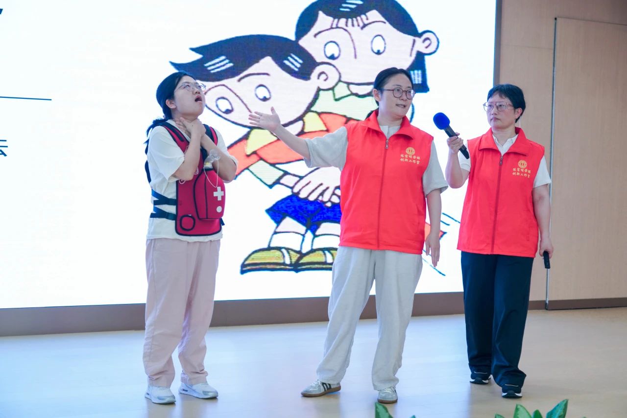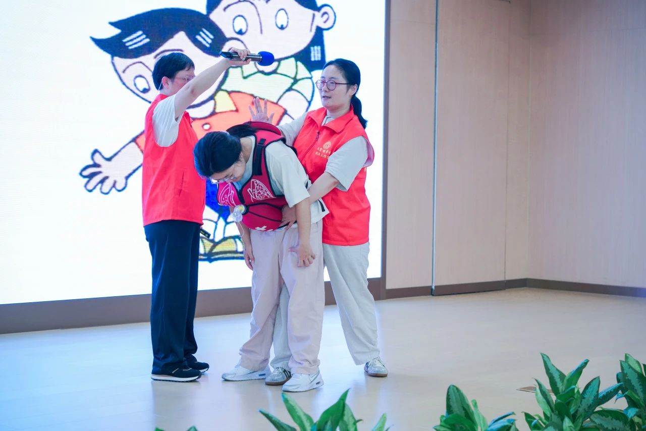 在海姆立克腹部沖擊法教學中,針對成人、兒童及孕婦不同群體,演示了標準化操作手法,并邀請學員上臺互動,現場糾正動作偏差。