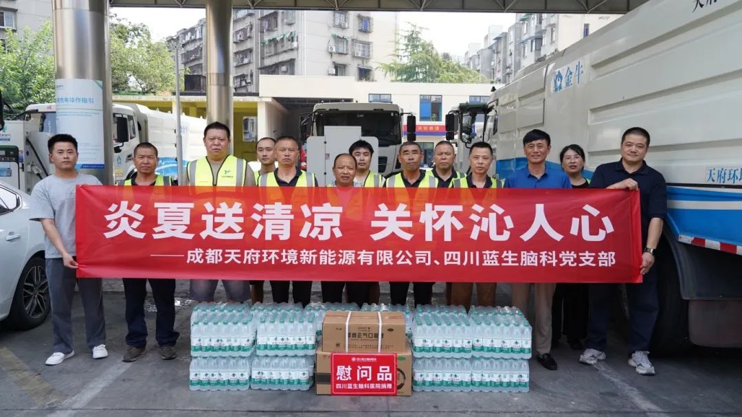 環衛工人是城市的 “美容師”,他們不畏高溫炙烤,不分晝夜用辛勤與汗水換來城市的潔凈容顏。此次慰問組走訪成都天府環境新能源有限公司,將清涼物資一一送到環衛工人手中,感激他們在烈日下的默默付出,希望這份清涼能為他們撐起一片夏日綠蔭。