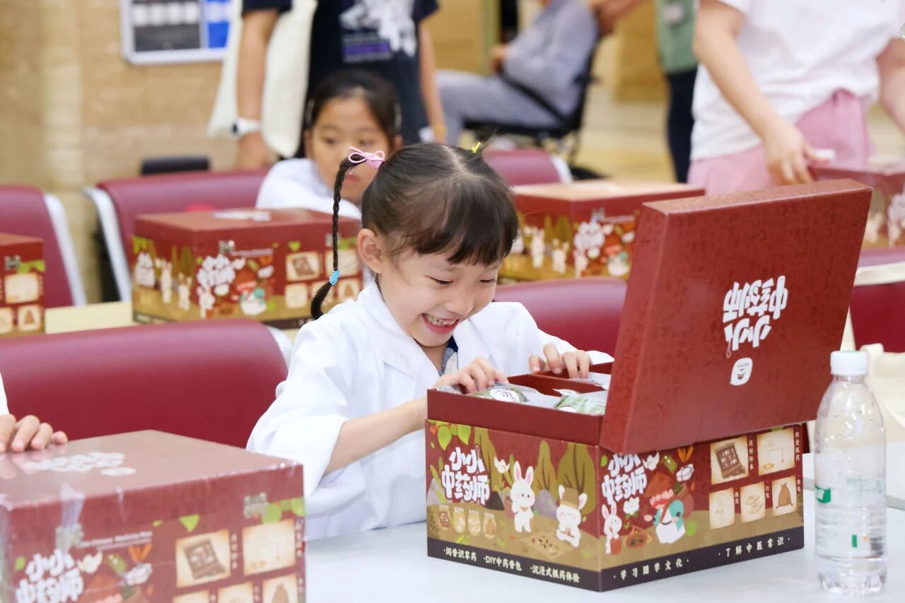 每個(gè)孩子的桌前,都整齊擺放著醫(yī)院特別準(zhǔn)備的“小小中藥師”香囊制作箱。箱內(nèi)不僅有八種常用藥材原料包,還配有仿古銅桿秤、木質(zhì)搗藥臼、古風(fēng)包藥紙和香囊袋,孩子們可以完整體驗(yàn)傳統(tǒng)中藥材香囊的制作流程,沉浸式體驗(yàn)中醫(yī)文化的博大精深。