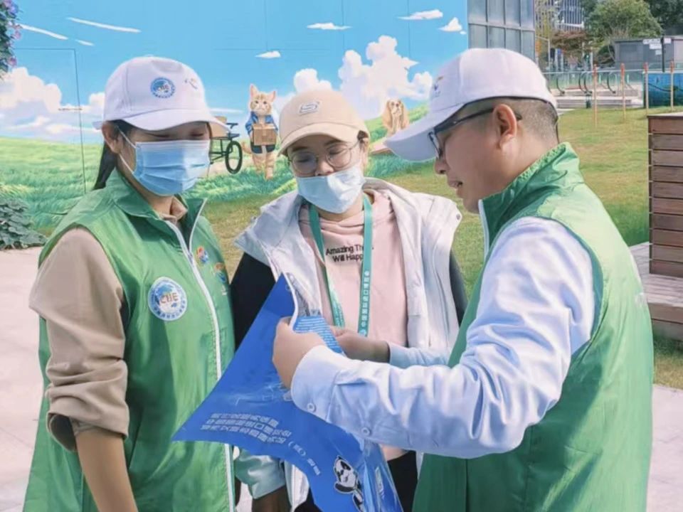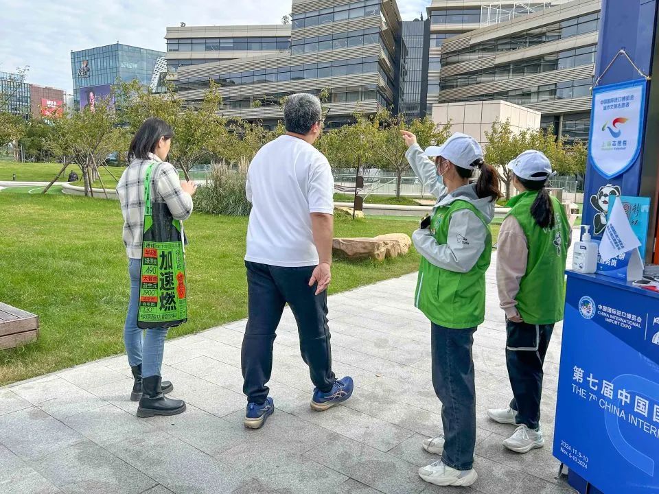 在這片熱鬧非凡的國際舞臺上,場館外身著綠色馬甲的志愿服務者們,立足崗亭,用他們的微笑與熱情,為這場盛會增添了幾分溫暖。從常規的道路指引到關于進博會展館、展品、交通等方面的各種問題,志愿者們有問必答,確保每一位游客都能順利參與展會、暢游上海。