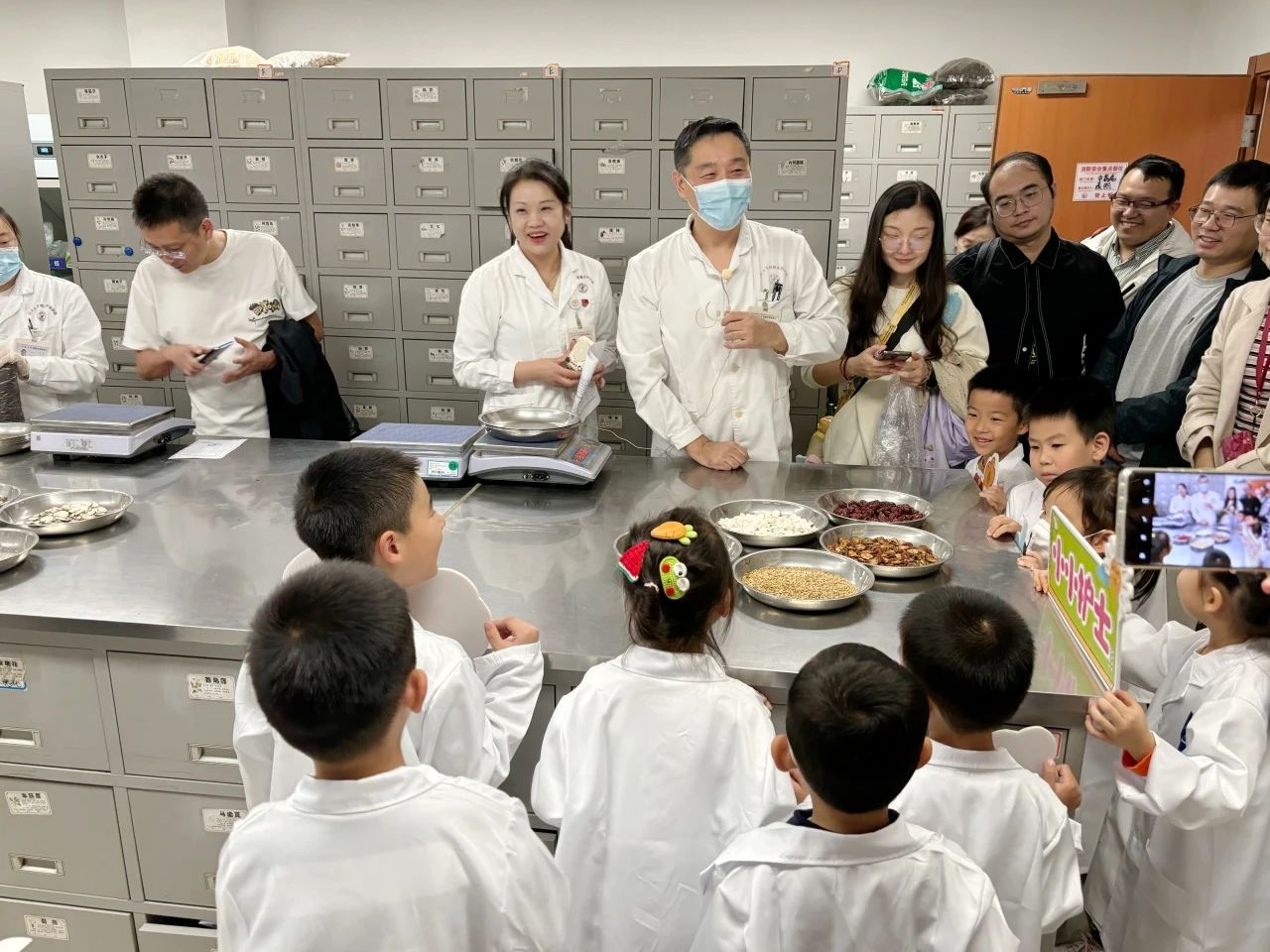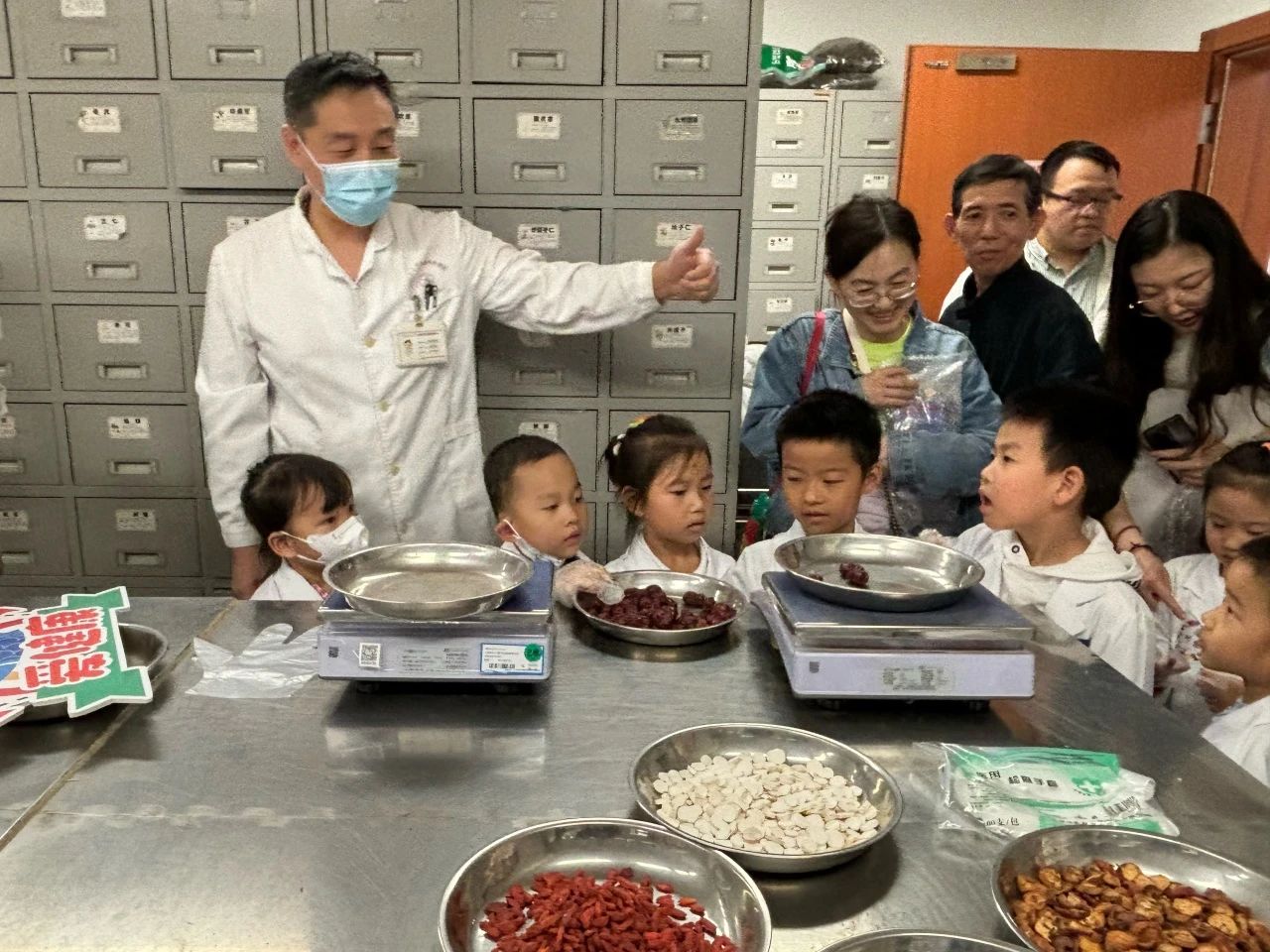 在中藥房,田韶波藥師已經(jīng)準(zhǔn)備好了各種藥材等著大家。“你們知道這是什么藥材嗎?”田藥師手里拿著藥材問道。“我知道,這是山楂。”“這是麥芽。”小醫(yī)生們熟練地說出了好幾種藥材的名字,聽到小朋友們的搶答,田藥師連連夸贊。在田藥師的指導(dǎo)下,小醫(yī)生們通過觸覺、嗅覺與視覺相結(jié)合的方式加深了對中藥的認(rèn)識,還親手稱重、分裝,體驗(yàn)了一把藥師的工作。