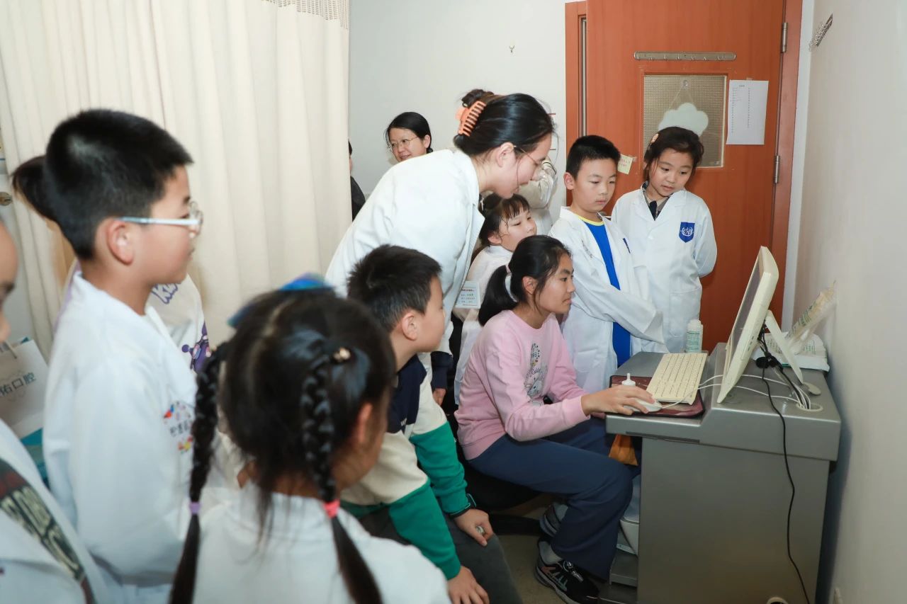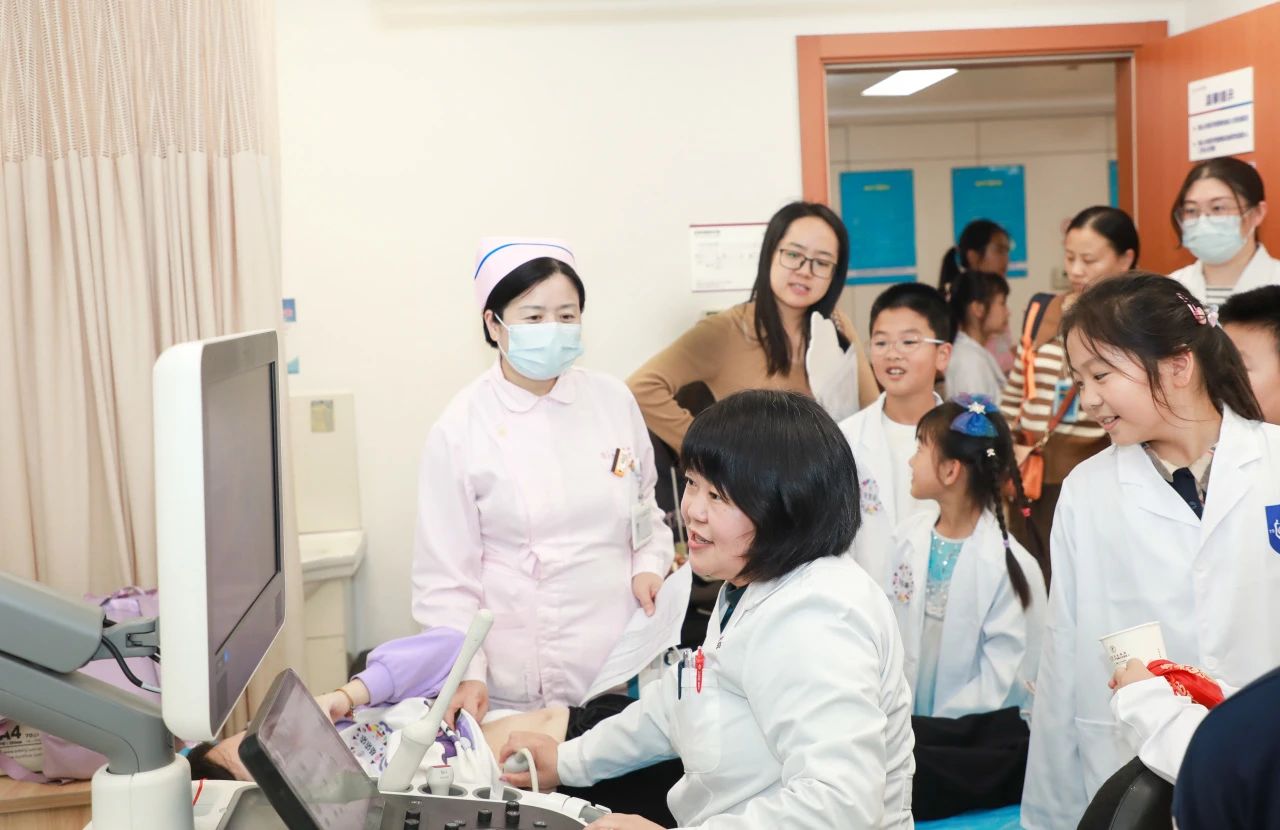 “這些粘稠的液體是什么呀?”在超聲科診室里,小醫(yī)生們好奇地向韓秀清醫(yī)生發(fā)問。“這是醫(yī)用超聲耦合劑,在檢查時(shí)能減少干擾,讓超聲成像更清晰,且對身體是無害的。”韓醫(yī)生一邊解釋,一邊為孩子們展示了腹部、心臟和頸部血管的彩超檢查。