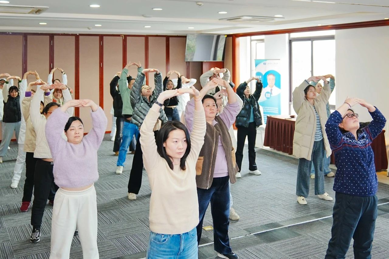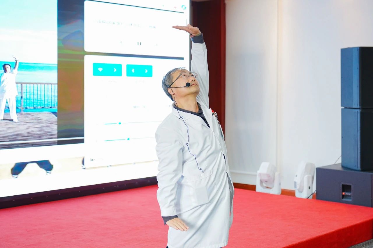 活動現場,藍生宏德醫(yī)院中醫(yī)康復科遲冬清主任為大家?guī)砹艘粓鼍实闹嗅t(yī)養(yǎng)生體驗課。遲主任首先為職工們詳細講解了“八段錦”的起源、歷史背景及其獨特的健身功效,讓大家對這項傳統健身氣功有了更深入的了解。隨后,遲主任從第一式開始,逐步分解動作,邊講解要領、邊示范,確保大家能準確掌握功夫要點。